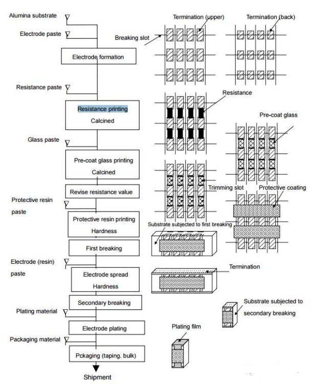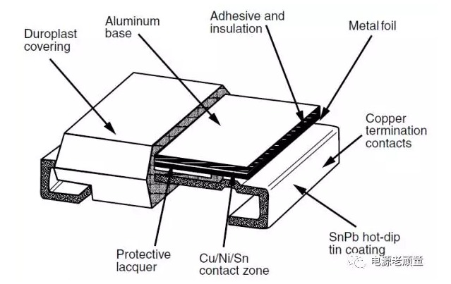 | 電阻的工藝種類繁多,可以根據(jù)阻值是否可以變化,分成兩大類介紹:固定電阻、可變電阻 1.1 電源適配器固定電阻 固定電阻,顧名思義就是電阻值是定值,不可變。大多數(shù)時(shí)候,我們使用的電阻都是固定值的。可以根據(jù)封裝的不同大致再分類 1.1.1 電源適配器軸向引線電阻(Axial Leaded Resistor) 軸線引線電阻通常都是圓柱形,兩個(gè)外電極是圓柱體兩端的軸向?qū)Ь€,根據(jù)材料和工藝的不同還可以再分為多種。 電源適配器繞線電阻(Wire Wound Resistor) ![]() 繞線電阻是將鎳鉻合金導(dǎo)線繞在氧化鋁陶瓷基底上,一圈一圈控制電阻大小。繞線電阻可以制作為精密電阻,容差可以到0.005%,同時(shí)溫度系數(shù)非常低,缺點(diǎn)是繞線電阻的寄生電感比較大,不能用于高頻。繞線電阻的體積可以做的很大,然后加外部散熱器,可以用作大功率電阻。 6w電源適配器碳合成電阻(Carbon Composition Resistor) ![]() 碳合成電阻主要是由碳粉末和粘合劑一起燒結(jié)成圓柱型的電阻體,其中碳粉末的濃度決定了電阻值的大小,在兩端加鍍錫銅引線,最后封裝成型。碳合成電阻工藝簡單,原材料也容易獲得,所以價(jià)格最便宜。但是碳合成電阻的性能不太好,容差比較大(也就是做不了精密電阻),溫度特性不好,通常噪聲比較大。碳合成電阻耐壓性能較好,由于內(nèi)部是可以看作是碳棒,基本不會被擊穿導(dǎo)致被燒毀。 電源適配器碳膜電阻(Carbon Film Resistor) ![]() 碳膜電阻主要是在陶瓷棒上形成一層碳混合物膜,例如直接涂一層,碳膜的厚度和其中碳濃度可以控制電阻的大??;為了更加精確的控制電阻,可以在碳膜上加工出螺旋溝槽,螺旋越多電阻越大;最后加金屬引線,樹脂封裝成型。碳膜電阻的工藝更加復(fù)雜一點(diǎn),可以做精密電阻,但由于碳質(zhì)的原因,還是溫度特性不太好。 6w電源適配器金屬膜電阻(Metal Film Resistor) ![]() 與碳膜電阻結(jié)構(gòu)類似,金屬膜電阻主要是利用真空沉積技術(shù)在陶瓷棒上形成一層鎳鉻合金鍍膜,然后在鍍膜上加工出螺旋溝槽來精確控制電阻。金屬膜電阻可以說是性能比較好的電阻,精度高,可以做E192系列,然后溫度特性好,噪聲低,更加穩(wěn)定。 金屬氧化物膜電阻(Metal Oxide Film Resistor) 與金屬膜電阻結(jié)構(gòu)類似,金屬氧化物膜主要是在陶瓷棒形成一層錫氧化物膜,為了增加電阻,可以在錫氧化物膜上加一層銻氧化物膜,然后在氧化物膜上加工出螺旋溝槽來精確控制電阻。金屬氧化物膜電阻最大的優(yōu)勢就是耐高溫。 1.1.2 電源適配器片狀電阻 金屬箔電阻(Metal Foil Resistor) ![]() 金屬箔電阻是通過真空熔煉形成鎳鉻合金,然后通過滾碾的方式制作成金屬箔,再將金屬箔黏合在氧化鋁陶瓷基底上,再通過光刻工藝來控制金屬箔的形狀,從而控制電阻。金屬箔電阻是目前性能可以控制到最好的電阻。 厚膜電阻(Thick Film Resistor) ![]() 厚膜電阻采用的絲網(wǎng)印刷法,就是再陶瓷基底上貼一層鈀化銀電極,然后在電極之間印刷一層二氧化釕作為電阻體。厚膜電阻的電阻膜通常比較厚,大約100微米。具體工藝流程如下圖所示。 ![]() 厚膜電阻是目前應(yīng)用最多的電阻,價(jià)格便宜,容差有5%和1%,絕大多數(shù)產(chǎn)品中使用的都是5%和1%的片狀厚膜電阻。 電源適配器薄膜電阻(Thin Film Resistor) 薄膜電阻就是氧化鋁陶瓷基底上通過真空沉積形成鎳化鉻薄膜,通常只有0.1um厚,只有厚膜電阻的千分之一,然后通過光刻工藝將薄膜蝕刻成一定的形狀。Thin Film工藝在此前電容和電感的文章中已經(jīng)提到過多次了,光刻工藝十分精確,可以形成復(fù)雜的形狀,因此,薄膜電容的性能可以控制的很好。