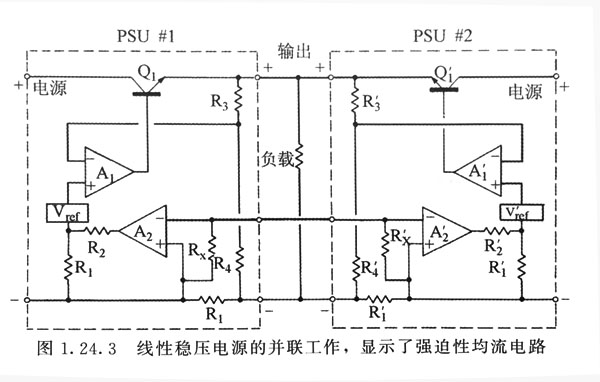 放大器A2將其所在電源適配器單元的輸出電流與整機的平均輸出電流進行比較,這個過程是通過內(nèi)部電流支路R1上的模擬電壓與整機模塊產(chǎn)生的平均模擬電壓進行比較來實現(xiàn)的,此平均模擬電壓是由全部支路產(chǎn)生并由互相連接的電阻R,的平均作用來實現(xiàn)的。A2可增大或者減少第二個參考電壓V2及所在電源適配器模塊的輸出電壓,維持與平均值同等的電流值。 各個電源適配器單元之間必須互連傳遞關(guān)于平均電流的信息(有時候這個聯(lián)系稱為P端連接)。 任意數(shù)目的該種電源適配器單元都可以直接并聯(lián)連接。對這些并聯(lián)的電源適配器單元的唯一要求就是它們的輸出必須調(diào)整在一個電壓捕捉范圍內(nèi)(本例中的捕捉范圍不超過額定輸出電壓的1%)。 這種技術(shù)的主要優(yōu)點就是可以并聯(lián)冗余運行,萬一其中的一個電源適配器出現(xiàn)故障,其他的并聯(lián)電源適配器工作模塊將重新平均地分配工作模塊的負載電流,不會中斷輸出。 組合的輸出電壓值會自己調(diào)整到各獨立電源適配器單元輸出的平均電壓值上。 這種電路的一個更實際的應(yīng)用在圖中得到了闡述。該電路的一個優(yōu)點就是其參考電壓可以按要求增大或減少。 放大器A2在A點的輸出電壓通常與參考電壓V相等,只要該電源適配器單元的輸出電流與組合輸出的平均電流相等,就不會有糾正動作。在這種情況下B點電壓與C點電壓是相等的。如電壓不平衡,B點電壓與C點電壓就不會相等,放大器A的輸出變化用來調(diào)整參考電壓。這將引起輸出電壓的變化和輸出電流的正,使其回到平衡狀態(tài)。