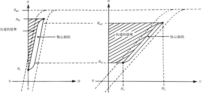 導通期間結束時,大小為1/2Lp·I2(I2為圖中與磁化強度H2相對應的電流)的能量儲存于變壓器磁場中,該能量少于保持在磁心中的能量1/2Lp·I2,并在每個周期傳遞到輸出電路。 總之,設計者必須根據要求的性能和傳遞的功率來選擇工作方式,注意檢查在所有可能負載條件下的工作方式,并準備設計控制環(huán)以處理所有實際情況。