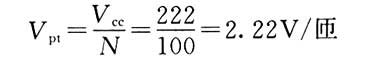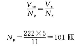 因此較小副邊電壓是10V。允許二極管和電感繞組上有1V的壓降,V,變成11V。這必須在90V的較小充電器輸入和16。5s的較大的導(dǎo)通時(shí)間時(shí)是有效的。 原邊直流電壓為90V時(shí),Vcc是 Vcc=90×1.3×1.9=222V 因原邊Nmin-=100匝,每匝電壓(Vpt)是