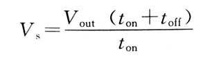 式中,Vs=副邊電壓; Vout=要求的輸出電壓(5V)。 本例中在50%最大占空比(即最小輸入電壓時的占空比)下計算副邊電壓。因此,tm=t,則計算的副邊電壓V,為: