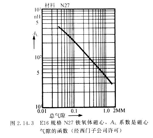 根據(jù)圖2。14。3(為E16磁心建立的數(shù)據(jù)),可以得到A1=59nH時(shí)需要的氣隙。 圖中給出的氣隙是0.6mm(0.024in)。