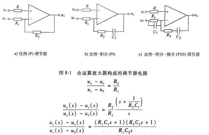 電壓調(diào)節(jié)器的結(jié)構(gòu)形式 5V1A電源適配器通常都要求較高的輸出電壓穩(wěn)壓精度,較好的電源應(yīng)該可以優(yōu)于0。5%,這樣高的穩(wěn)態(tài)精度采用比例(P)調(diào)節(jié)器是難以達(dá)到的,因此電壓調(diào)節(jié)器的結(jié)構(gòu)形式都采用比例積分(F)或比例積分微分(PD)調(diào)節(jié)器,由于積分環(huán)節(jié)的存在,理論上講輸出電壓的穩(wěn)態(tài)誤差為零。實(shí)際電路中,由于運(yùn)算放大器零偏、漂移和基準(zhǔn)源與反饋電路的誤差等問題,實(shí)際穩(wěn)態(tài)誤差不會(huì)為零,但已可以達(dá)到較高的精度。 上述3種調(diào)節(jié)器的電路形式見圖。 圖中,ur為電壓參考信號(hào),是電壓給定。是電壓反饋。B是控制量,在電壓模式控制中,控制量用來直接控制占空比;在電流模式控制中,電壓調(diào)節(jié)器的控制量作為電流環(huán)的給定信號(hào),用來控制輸出電流。 這3種調(diào)節(jié)器的傳遞函數(shù)分別為