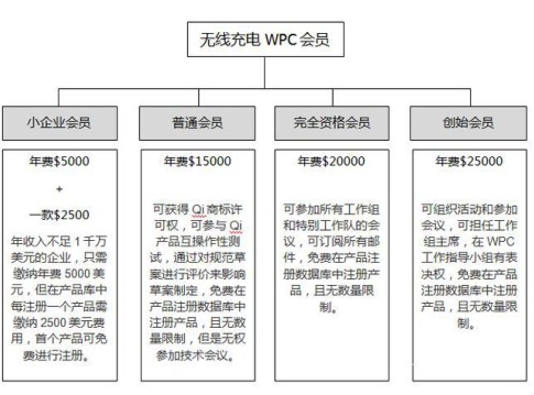 無線充電器聯(lián)盟(簡稱:WPC聯(lián)盟)由多家獨(dú)立公司組成的合作組織,qi標(biāo)準(zhǔn)是WPC為可兼容的無線充電器座設(shè)立的國際標(biāo)準(zhǔn)。帶有qi標(biāo)志的手機(jī)、相機(jī)、遙控器及所有電子產(chǎn)品將與印有標(biāo)志的所有充電器座兼容。![]() qi標(biāo)識 在目前商用的手機(jī)無線充電器領(lǐng)域,WPC聯(lián)盟的qi標(biāo)準(zhǔn)占據(jù)絕對優(yōu)勢,截止到8月份全球已經(jīng)有628家公司加入了qi會員,包括蘋果、三星、LG、haier等國際知名企業(yè)。 WPC會員 “qi”標(biāo)識是屬于WPC聯(lián)盟,在無線復(fù)讀機(jī)電源適配器充電器產(chǎn)品上使用這個標(biāo)識,首先需要得到WPC的授權(quán),在未經(jīng)授權(quán)的情況下使用,屬于侵權(quán)會受到WPC的懲罰或面臨產(chǎn)品下架。另外,無線充電器產(chǎn)品經(jīng)過qi認(rèn)證之后,各項(xiàng)指標(biāo)符合qi標(biāo)準(zhǔn)要求,也是產(chǎn)品本身質(zhì)量的保證,消費(fèi)者使用通過qi認(rèn)證的產(chǎn)品明顯要比未通過的更加安全可靠。 一款產(chǎn)品要申請qi認(rèn)證,首先需要公司注冊成為WPC會員,繳納會員費(fèi),會員有小企業(yè)會員、普通會員、完全資格會員和創(chuàng)始會員,不同的會員繳納的會員費(fèi)不同,獲得的權(quán)利也不同。