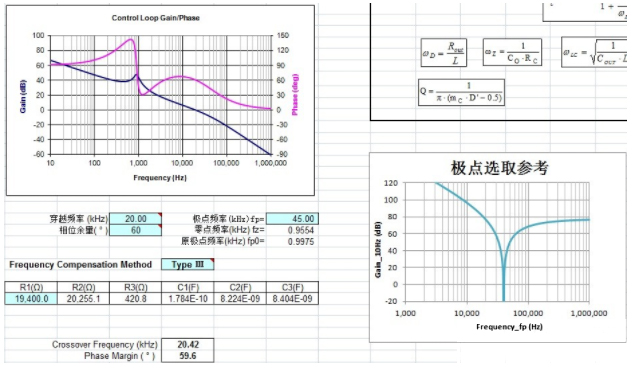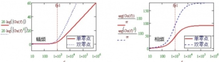 由于平板電腦電源適配器缺乏控制理論方面的知識在剛接觸反饋環(huán)路的時候對其中的很多名詞不是很明白,這次準備采用圖解的方法逐一的搞清楚這些名詞并且試圖找出一種便捷的設置零、極點的方法。大家可以分享。共同探討,進步。![]() 在經典控制理論中經??吹絇ID控制(比例、積分、微分),這三者是獨立的互不影響的所以容易調節(jié)。零極點的方法同PID有異曲同工之妙,如果有被控系統的精確模型那么只要在bode圖上移動零極點并采用加減運算就能得出較理想的控制效果,貌似比PID還簡單(PID的優(yōu)點是無需被控系統的模型)。如何理解零極點、雙重零極點、斜率-1過穿越頻率、條件穩(wěn)定、1/2fs采樣定理等等將是首先探討的問題。 采樣頻率和被控對象的數學模型有什么必然的聯系?PID中的參數因相互獨立容易實現“盲調”,比如工程上不容易建模,被控對象又不復雜的,經常會采用如下口訣 參數整定找最佳,從大到小順序查 先是比例后積分,最后再把微分加 曲線振蕩很頻繁,比例度盤要放大 曲線漂浮繞大灣,比例度盤往小扳 曲線偏離回復慢,積分時間往下降 曲線波動周期長,積分時間再加長 曲線振蕩頻率快,先把微分降下來 動差大來波動慢。微分時間應加長 理想曲線兩個波,前高后低4比1 一看二調多分析,調節(jié)質量不會低 ![]() 圖1-1-1 單極點1—RC低通濾波器 單極點的特性如圖1-1-1所示可用一個RC低通濾波器來表述。隨著輸入信號頻率的增加輸出的電壓幅值不斷下降相位逐漸逼近-90度(相位滯后)。 符合這一特性的還有LR低通濾波器,見下圖: ![]() 圖1-1-2 單極點2—LR低通濾波器 從兩張圖可以看出極點的特性是使信號幅值發(fā)生衰減這對系統穩(wěn)定有益,不過相位滯后不利于系統穩(wěn)定。從bode圖上看極點就是使增益曲線發(fā)生順時針旋轉的拐點,從公式上看就是能使分母等于零從而得到一個極大值(后面提到的原極點會比較明顯)。 如果將圖1-1-1和圖1-1-2串聯起來使用對幅值的衰減能力更強,其幅頻特性和相頻特性曲線如下: ![]() 圖1-1-3中紅色曲線為單極點藍線虛線為兩個單極點串聯,串聯后幅頻曲線由斜率-1變?yōu)榱诵甭?2,相位由-90度滯后為-180度,這就是雙極點的特性。 一般電路中的雙極點是由LC電路產生的,理想的不帶寄生電阻的LC雙極點圖如下: ![]() 在圖1-1-1中如果電容取無窮大(或RC無窮大)其極點頻率fp=1/(2πRC)將無限接近于零,變成了過零點的極點——零極點(或稱原極點)。這時RC電路無限接近于積分電路,在實際補償環(huán)路中一般就是用積分電路來實現的零極點。 ![]() 從公式上看當頻率f=0時分母等于零傳遞函數的增益無窮大,所以零極點可以用來提升靜態(tài)增益(零頻增益)。在補償環(huán)路中零極點一般是必須和首先增加的環(huán)節(jié)。 零點的特性剛好跟極點相反,對信號的幅值進行放大同時相位產生+90度偏移(相位超前),前者不利于系統穩(wěn)定后者有益于系統穩(wěn)定。由于要對信號進行放大所以單零點電路要借助于運放來搭建。 ![]() 如圖1-2-1從bode圖上看零點就是增益曲線發(fā)生逆時針旋轉的拐點,從公式上看零點在分子上可以使方程得到零值。 圖1-2-1中的電路兩個串聯就構成了雙零點電路,幅頻特性和相頻特性曲線如下: ![]() 如果將圖1-1-1的單零點和圖1-2-1的單極點串聯起來使用結果會如何? ![]() 圖1-2-3 零點、極點重合 圖1-2-3顯示當零、極點重合后輸出信號和輸入信號一致不發(fā)生任何改變。從這里可以得出一個結論:極點可用零點來補償零點可用極點來補償,雙極點可用雙零點來補償。