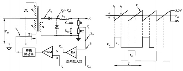 | 在設(shè)計(jì)充電器的過(guò)程中反饋環(huán)路為什么會(huì)振蕩?今天六級(jí)能效電源適配器廠家玖琪實(shí)業(yè)為伙伴們?cè)敿?xì)分析! 圖所示為正激變換器的典型負(fù)反饋環(huán)路。一般脈寬調(diào)制芯片不僅有基本的誤差放大器和PwM調(diào)制器功能,同時(shí)也有其他一些功能。不過(guò)分析系統(tǒng)穩(wěn)定性問(wèn)題,暫且只考慮誤差放大器和脈寬調(diào)制功能。 ![]() 正激變換器的典型閉環(huán)反饋環(huán)路 由網(wǎng)壓輸入或負(fù)載的改變引起V的微小、緩慢變化,該變化通過(guò)由R1、R2組成的電阻分壓采樣網(wǎng)絡(luò)檢測(cè),輸入到誤差放大器EA的反相端,與EA同相輸入端的參考電壓V進(jìn)行比較。EA輸出端相對(duì)緩慢變化的電壓V隨之改變,并輸入到PwM調(diào)制器的A輸人端。PWM調(diào)制器將A端輸入的直流電壓V與B端輸人的幅值大約為0~3V的三角波V,進(jìn)行比較后,在輸出端得到矩形脈沖(PWM脈沖)。PWM脈沖的寬度L為三角波開(kāi)始時(shí)刻到直流電壓與B端三角波相交時(shí)刻t1的時(shí)間。此脈沖的寬度決定了PwM芯片輸出晶體管的導(dǎo)通時(shí)間,也就決定了功率晶體管的導(dǎo)通時(shí)間。例如,輸入電壓V的緩慢升高將導(dǎo)致V,的緩慢升高,由于輸出電壓 ,從而也引起V的緩慢升高。V的升高會(huì)引起采樣電壓V,升高,V隨之降低。因?yàn)長(zhǎng)是從三角波開(kāi)始時(shí)刻到V與三角波相交的時(shí)刻t1的一段時(shí)間,故V的降低將導(dǎo)致的減小,使V恢復(fù)到它的原始值。同理,V4的下降將導(dǎo)致的增加,以保持V不變,滿足輸出電壓穩(wěn)定的要求。功率晶體管的驅(qū)動(dòng)信號(hào)通常來(lái)自PWM芯片內(nèi)輸出晶體管的射極或集電極,即信號(hào)已在芯片內(nèi)部經(jīng)過(guò)一級(jí)電流放大基極驅(qū)動(dòng)電路。無(wú)論從集電極輸出還是發(fā)射極輸出,都必須保證極性正確,即當(dāng)輸出V上升時(shí),導(dǎo)通時(shí)間縮短。注意,大部分PwM芯片的輸出品體管在到1時(shí)間內(nèi)都是導(dǎo)通的。使用這類PwM芯片時(shí),V要接到EA的反相輸入端采用NPN型功率晶體管作為開(kāi)關(guān)管時(shí),其基極(N溝道 MOSFET管則稱為門極)應(yīng)由PWM芯片輸出晶管的發(fā)射極來(lái)驅(qū)動(dòng)。 圖所示電路是考慮低頻信號(hào)作用時(shí)的負(fù)反饋穩(wěn)壓系統(tǒng)。然而環(huán)路中可能存在低電平的噪聲電壓或暫態(tài)電壓,它們的正弦傅里葉分量的頻譜很寬。這些傅里葉分量經(jīng)過(guò)輸出濾波器的L、C、誤差放大器,以及PWM調(diào)制器(V到V)后的增益變化和相移都是不一樣的若某一傅里葉分量的環(huán)路增益是1,額外的相移為180°(第一個(gè)180°來(lái)源于負(fù)反饋連接),總的相移為360°,則反饋后的信號(hào)將會(huì)與輸入同相,即會(huì)變成正反饋,而不是所期望的負(fù)反饋從而引起下面所說(shuō)的振蕩。 系統(tǒng)振蕩原理 以圖中的正激變換器反饋環(huán)路為例,假設(shè)在某一時(shí)刻,環(huán)路在誤差放大器的反相端B點(diǎn)斷開(kāi)。在環(huán)路斷開(kāi)前,所有的傅里葉分量從B點(diǎn)到V=,從V到平均電壓V,再?gòu)钠骄妷篤通過(guò)L、C濾波器返回到B(即環(huán)路的斷開(kāi)處)的過(guò)程中,都有增益變化和相移。 假設(shè)此時(shí)有一頻率為f的干擾信號(hào)進(jìn)入B點(diǎn),經(jīng)過(guò)上述的路徑后返回到B,得到的響應(yīng)信號(hào)(eho)的相位和增益與原B點(diǎn)信號(hào)相比都發(fā)生了變化。倘若響應(yīng)信號(hào)正好與原信號(hào)同相位且幅值相等,而此時(shí)環(huán)路恢復(fù)正常的閉合狀態(tài)(Bb與B相連),并且外部注入的干擾信號(hào)消失,電路中仍將存在頻率為f的持續(xù)振蕩。引起并維持振蕩的干擾信號(hào)就是噪聲譜中頻率為f的傅里葉分量。 電路穩(wěn)定的增益準(zhǔn)則 穩(wěn)定環(huán)路的第一個(gè)準(zhǔn)則是:在開(kāi)環(huán)總增益為1的穿越頻率處,系統(tǒng)的總開(kāi)環(huán)相移必須小于。這里包括了負(fù)反饋帶來(lái)的180°相移。在穿越頻率處,總相移小于360°的角度稱為相位裕量。 為了保證系統(tǒng)在各元件的參數(shù)發(fā)生變化的最惡劣情況下仍然保持環(huán)路穩(wěn)定,通常的設(shè)計(jì)準(zhǔn)則是使系統(tǒng)至少有35°~45°的相位裕量。 電動(dòng)玩具電源適配器電路穩(wěn)定的增益斜率準(zhǔn)則 本節(jié)將介紹一些常用的與增益斜率相關(guān)的穩(wěn)定準(zhǔn)則。增益V/V隨頻率的變化曲線通常用半對(duì)數(shù)坐標(biāo)(dB)表示,如圖所示。增益變化20dB(即代數(shù)變化10倍)時(shí),頻率變化10倍,則該增益的變化率為20dB/dec,斜率為±1。因此,增益變化率為±20dB/de的電路也稱為1增益斜率電路。 圖為BC積分電路,在極點(diǎn)f=1(2B1C)后的增益斜率dV/dV。為-20dB/dec,即頻率變化10倍時(shí),增益變化20dB。-20dB/de即是-1增益斜率,這種電路也稱為-1斜率電路。 圖為RC微分電路,在零點(diǎn)f=1(2mR2C2)前的增益斜率為+20dB/de,零點(diǎn)處有X。=R2。零點(diǎn)后增益漸近通近0dB。頻率每變化10倍頻,增益變化20dB,+20dB/dh為+1的增益斜率,這種電路也稱為+1斜率電路。 圖為L(zhǎng)C/R濾波電路,在臨界阻尼(R=√C)情況下,增益dF/dF在轉(zhuǎn)折頓率=1/(2m√DC。)前為1(即0dB)。轉(zhuǎn)折頻率后,增益的斜率變成-40B/d,這是