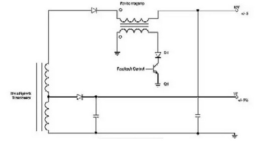 | 一、反激式電源中的鐵氧體磁放大器 對(duì)于兩個(gè)輸出端都提供實(shí)際功率(5 V 2 A 和 12 V 3 A,兩者都可實(shí)現(xiàn)± 5%調(diào)節(jié))的雙路輸出反激式電源來(lái)說(shuō),當(dāng)電壓達(dá)到 12 V 時(shí)會(huì)進(jìn)入零負(fù)載狀態(tài),而無(wú)法在 5%限度內(nèi)進(jìn)行調(diào)節(jié)。線性穩(wěn)壓器是一個(gè)可實(shí)行的解決方案,但由于價(jià)格昂貴且會(huì)降低效率,仍不是理想的解決方案。我們建議的解決方案是在 12 V 輸出端使用一個(gè)磁放大器,即便是反激式拓?fù)浣Y(jié)構(gòu)也可使用。 為了降低成本,建議使用鐵氧體磁放大器。然而,鐵氧體磁放大器的控制電路與傳統(tǒng)的矩形磁滯回線材料(高磁導(dǎo)率材料)的控制電路有所不用。鐵氧體的控制電路(D1 和 Q1)可吸收電流以便維持輸出端供電。該電路已經(jīng)過(guò)全面測(cè)試。變壓器繞組設(shè)計(jì)為 5 V 和 13 V 輸出。該電路在實(shí)現(xiàn) 12 V 輸出± 5%調(diào)節(jié)的同時(shí),甚至還可以達(dá)到低于 1 W 的輸入功率(5 V 300 mW和12V零負(fù)載) ![]() 二、使用現(xiàn)有的消弧電路提供過(guò)流保護(hù) 考慮一下 5 V 2 A 和 12 V 3 A 反激式電源。該電源的關(guān)鍵規(guī)范之一便是當(dāng) 12 V 輸出端達(dá)到空載或負(fù)載極輕時(shí),對(duì) 5 V 輸出端提供過(guò)功率保護(hù)(OPP)。這兩個(gè)輸出端都提出了± 5%的電壓調(diào)節(jié)要求。 對(duì)于通常的解決方案來(lái)說(shuō),使用檢測(cè)電阻會(huì)降低交叉穩(wěn)壓性能,并且保險(xiǎn)絲的價(jià)格也不菲。而現(xiàn)在已經(jīng)有了用于過(guò)壓保護(hù)(OVP)的消弧電路。該電路能夠同時(shí)滿足 OPP 和穩(wěn)壓要求,使用部分消弧電路即可實(shí)現(xiàn)該功能。 從圖 2 可以看出,R1 和 VR1 形成了一個(gè) 12 V 輸出端有源假負(fù)載,這樣可以在 12 V 輸出端輕載時(shí)實(shí)現(xiàn) 12 V 電壓調(diào)節(jié)。在 5 V 輸出端處于過(guò)載情況下時(shí),5 V 輸出端上的電壓將會(huì)下降。假負(fù)載會(huì)吸收大量電流。R1 上的電壓下降可用來(lái)檢測(cè)這一大量電流。Q1 導(dǎo)通并觸發(fā) OPP電路。 ![]() 三、有源并聯(lián)穩(wěn)壓器與假負(fù)載 在線電壓 AC 到低壓 DC 的開(kāi)關(guān)電源產(chǎn)品領(lǐng)域中,反激式是目前流行的拓?fù)浣Y(jié)構(gòu)。這其中的一個(gè)主要原因是其獨(dú)有的成本效益,只需向變壓器次級(jí)添加額外的繞組即可提供多路輸出電壓。 通常,反饋來(lái)自對(duì)輸出容差有嚴(yán)格要求的輸出端。然后,該輸出端會(huì)定義所有其它次級(jí)繞組的每伏圈數(shù)。由于漏感效應(yīng)的存在,輸出端不能始終獲得所需的輸出電壓交叉穩(wěn)壓,特別是在給定輸出端因其它輸出端滿載而可能無(wú)負(fù)載或負(fù)載極輕的情況下更是如此。 可以使用后級(jí)穩(wěn)壓器或假負(fù)載來(lái)防止輸出端電壓在此類情況下升高。然而,由于后級(jí)穩(wěn)壓器或假負(fù)載會(huì)造成成本增加和效率降低,因而它們?nèi)狈ψ銐虻奈?,特別是在近年來(lái)對(duì)多種消費(fèi)類應(yīng)用中的空載和/或待機(jī)輸入功耗的法規(guī)要求越來(lái)越嚴(yán)格的情況下,這一設(shè)計(jì)開(kāi)始受到冷落。圖 3中所示的有源并聯(lián)穩(wěn)壓器不僅可以解決穩(wěn)壓?jiǎn)栴},還能夠大限度地降低成本和效率影響。 ![]() 該電路的工作方式如下:兩個(gè)輸出端都處于穩(wěn)壓范圍時(shí),電阻分壓器 R14 和 R13 會(huì)偏置三極管 Q5,進(jìn)而使 Q4 和 Q1 保持在關(guān)斷狀態(tài)。在這樣的工作條件下,流經(jīng) Q5 的電流便充當(dāng) 5 V輸出端很小的假負(fù)載。 5 V 輸出端與 3.3 V 輸出端的標(biāo)準(zhǔn)差異為 1.7 V。當(dāng)負(fù)載要求從 3.3 V 輸出端獲得額外的電流,而從 5 V 輸出端輸出的負(fù)載電流并未等量增加時(shí),其輸出電壓與 3.3 V 輸出端的電壓相比將會(huì)升高。由于電壓差異約超過(guò) 100 mV,Q5 將偏置截止,從而導(dǎo)通 Q4 和 Q1 并允許電流從 5 V 輸出端流到 3.3 V 輸出端。該電流將降低 5 V 輸出端的電壓,進(jìn)而縮小兩個(gè)輸出端之間的電壓差異。 Q1 中的電流量由兩個(gè)輸出端的電壓差異決定。因此,該電路可以使兩個(gè)輸出端均保持穩(wěn)壓,而不受其負(fù)載的影響,即使在 3.3 V 輸出端滿載而 5 V 輸出端無(wú)負(fù)載這樣差的情況下,仍能保持穩(wěn)壓。設(shè)計(jì)中的 Q5 和 Q4 可以提供溫度補(bǔ)償,這是由于每個(gè)三極管中的 VBE 溫度變化都可以彼此抵消。二極管 D8 和 D9 不是必需的器件,但可用于降低 Q1 中的功率耗散,從而無(wú)需在設(shè)計(jì)添加散熱片。 該電路只對(duì)兩個(gè)電壓之間的相對(duì)差異作出反應(yīng),在滿載和輕負(fù)載條件下基本不起作用。由于并聯(lián)穩(wěn)壓器是從 5 V 輸出端連接到 3.3 V 輸出端,因此與接地的并聯(lián)穩(wěn)壓器相比,該電路的有源耗散可以降低 66%。其結(jié)果是在滿載時(shí)保持高效率,從輕負(fù)載到無(wú)負(fù)載的功耗保持較低水平。 四、采用 StackFET?的高壓輸入開(kāi)關(guān)電源 使用三相交流電進(jìn)行工作的工業(yè)設(shè)備常常需要一個(gè)可以為模擬和數(shù)字電路提供穩(wěn)定低壓直流電的輔助電源級(jí)。此類應(yīng)用的范例包括工業(yè)傳動(dòng)器、UPS 系統(