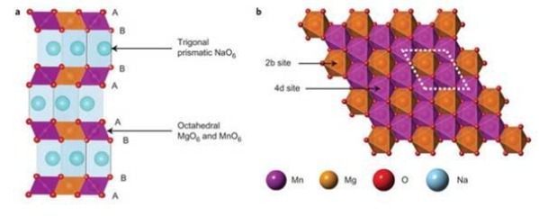 近日, Bruce 教授在鈉離子電池的正極材料研究中又取得巨大的突破并發(fā)表 在 Nature 子刊上。 (Nature Chem., 2018, 10, 288–295) 文章報(bào)道了一種 P2 型的 Na2/3[Mg0.28Mn0.72]O2 層狀鈉離子電池正極材料, 具有近 170 mAh/g 的 高比容量和近 2.75V 的放電電壓。 而這高的容量來自于該材料的穩(wěn)定結(jié)構(gòu)以及氧 元素的氧化還原。 在鈉離子脫出時(shí),低含量的鈉促進(jìn)了 O2 結(jié)構(gòu)的氧化層的形成。 此外氧在充電過程中存在氧化還原反應(yīng)又額外貢獻(xiàn)了容量。 同時(shí) Mg2+的引入 又抑制了氧的損失。這項(xiàng)工作對(duì)鋰電和鈉電正極材料中氧的氧化還原所提供額外 容量的現(xiàn)象又提供了進(jìn)一步的認(rèn)識(shí), 此外也提供了從結(jié)構(gòu)和組分上來設(shè)計(jì)材料, 通過抑制氧的流失來實(shí)現(xiàn)高容量的正極材料的新路徑。