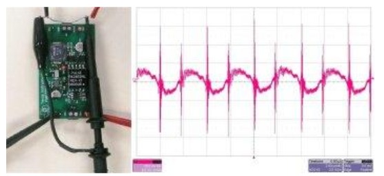 較后,在隔離電源適配器中,會產(chǎn)生大量流經(jīng)探針接地連接點的共模電流。這就在電源適配器接地連接點和示波器接地連接點之間形成了壓降,從而表現(xiàn)為紋波。要防止這一問題的出現(xiàn),我們就需要特別注意電源適配器設計的共模濾波。另外,將示波器引線纏繞在鐵氧體磁心周圍也有助于
