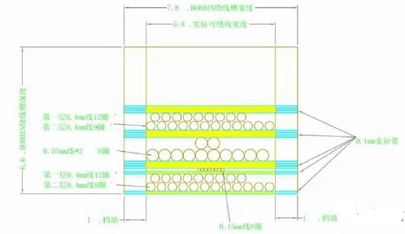 電源適配器變壓器的繞制方法 為了減少漏感,目前最好的、工藝最簡(jiǎn)單的繞制方法是初次級(jí)交錯(cuò)繞法也就是大家常說的三明治繞法。