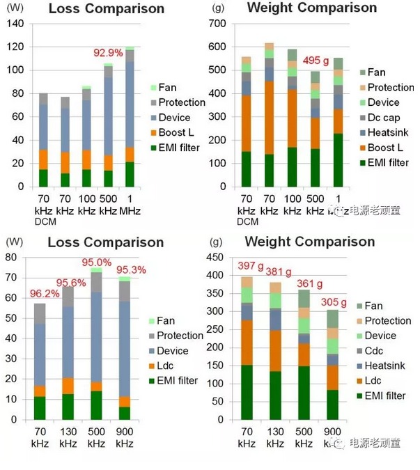 | 電源適配器EMI和干擾 在我接觸EMI前,很多電源適配器工程師以他們有豐富的EMI調(diào)試經(jīng)驗來鄙視我們這些菜鳥,搞的我一直以為EMI是門玄學(xué),也有很多人動不動就拿EMI出來嚇人。我想說電源適配器EMI確實很難理解,很難有精確的紙面設(shè)計,但是通過研究我們還是能知道大概趨勢指導(dǎo)設(shè)計,而不是一些工程嘴里完全靠trial and error的流程。 這就是我們電源適配器工程師外出機構(gòu)做測試的實驗室~ ![]() 我先給出結(jié)論,電源適配器EMI確實和開關(guān)頻率不成線性關(guān)系,某些開關(guān)頻率下,EMI濾波器的轉(zhuǎn)折頻率較高,但是總體趨勢而言,是開關(guān)頻率越高,電源適配器EMI體積越??! 我知道很多人開始噴我了,怎么可能,di/dt和dv/dt都大了,怎么可能EMI濾波體積還小了。我想說一句,共模和差模濾波器的沒有區(qū)別,相同的截止頻率下,高頻的衰減更大!就算你高頻下共模噪聲越大,但是你的記住,這個頻率下LC濾波器的衰減更大,想想幅頻曲線吧。為了說明這個結(jié)論,我給出一些定量分析結(jié)果。這些EMI分析均基于AC/DC三相整流,拓撲為維也納整流。我分別給出了1Mhz和500Khz的共模噪聲,可以看出,500khz共模濾波器需要的截止頻率為19.2kHz,1MHz為31.2kHz。 ![]() 這張圖給出了不同頻率下共模和差模濾波器轉(zhuǎn)折頻率的關(guān)系,可以看出,一些低頻點EMI濾波器體現(xiàn)出了非常好的特性。例如70Khz,140Khz。而這兩個開關(guān)頻率是工業(yè)界常用的兩個開關(guān)頻率,非常討巧,因為EMI噪聲測試是150KHz到30MHz。不過這個也與拓撲有關(guān)。 ![]() 以上數(shù)據(jù)均基于仿真,雖然不能精確的反應(yīng)EMI噪聲的大小,但是趨勢肯定是正確的。說了這么多,我只想表明,開關(guān)頻率的選取相當(dāng)有學(xué)問。如果要以高功率密度為設(shè)計指標(biāo),開關(guān)頻率并不是越高越好,而是有一個最佳轉(zhuǎn)折點。下面2張圖給出了維也納整流器和BUCK-type整流器的功率密度趨勢,可以看出,最佳功率密度點不是一個開關(guān)頻率。對那些拍著腦瓜選開關(guān)頻率,解決EMI問題并且鄙視過我的老工程師,我還是懷有很大敬意的,但是我想說的是,如果真正想設(shè)計一臺最高功率密度的變換器,詳細的考證是值得的,還不是單純依靠經(jīng)驗,況且經(jīng)驗背后也是一定有理論支持。 ![]() 我不禁問個問題,都有EMI濾波器,EMI噪聲都符合標(biāo)準,為啥高頻干擾大。難道大家在實際工程遇到高頻干擾是個假象?不是的,舉一個非常簡單的例子,剩下的自己思考吧。 在輸入電壓較高的場合中,一般開關(guān)管驅(qū)動的都需要隔離。我們知道隔離后一端的地一般要接到懸浮開關(guān)管的源端,一般這一點的電平是跳變的,以氮化鎵晶體管為例,這點電壓變化率可以達到140kV/us。而隔離芯片前一端的地是與控制地連接的,你隨便看看隔離模塊電源的手冊,原副邊耦合的寄生電容一般在60pF左右,也是就說在高速開關(guān)瞬間,會產(chǎn)生大約6A的電流從副邊的地通過電容耦合到原邊,原邊的地電平肯定瞬間產(chǎn)生尖峰,整個控制系統(tǒng)產(chǎn)生強烈的干擾。所以做高頻的時候,隔離電源的地線千萬不要平行的鋪在2層PCB中,干擾效果會更加強烈。 同時選隔離芯片的時候也需要注意一個參數(shù)叫做CM transient immunity(肯定會給的),這個參數(shù)最好大于開關(guān)瞬間,橋臂中點電平的變化速率。光耦隔離這個參數(shù)一般在30kV/us,磁耦在35kV/us,電容耦合在50kV/us(是不是絕望了,都比氮化鎵低,硅器件一般在10kV/us,Sic 30kV/us)。 ![]() 還有很多細節(jié)可以引起干擾,不過真的不是EMI噪聲做的孽。 我先簡單的把以上內(nèi)容總結(jié)一下: 電源適配器不是開關(guān)頻率越高,功率密度就越高,目前這個階段來說真正阻礙功率密度提高的是散熱系統(tǒng)和電磁設(shè)計(包括EMI濾波器和變壓器)和功率集成技術(shù)。 慎重選擇開關(guān)頻率,開關(guān)頻率會極大的影響整個變化器的功率密度,而且針對不同器件,拓撲,最佳的開關(guān)頻率是變化的。 高頻確實產(chǎn)生很多很難解決的干擾問題,往往要找到干擾回路,然后采取一些措施。 為了繼續(xù)維持電力電子變換器功率密度的增長趨勢,高頻肯定是趨勢。只是針對高頻設(shè)計的電力電子技術(shù)很不成熟,相關(guān)配套芯片沒有達到要求,一些高頻的電源適配器電磁設(shè)計理論不完善和精確,使用有限元軟件分析將大大增加開發(fā)周期。 文章轉(zhuǎn)載自網(wǎng)絡(luò),如有侵權(quán),請聯(lián)系刪除。 |