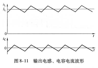 式中l(wèi)rms—輸出濾波電容器的有效值電流; Ip-p—峰-峰值電流; lo—輸出電流平均值? 可以得出當(dāng)負(fù)載電流在20%?10%額定電流時(shí)為電流臨界連續(xù)狀態(tài),則流過輸出濾波電容器的有效值電流為額定輸出電流的18.26%?9.13%?應(yīng)該說相對(duì)輸出電流而言,這個(gè)電流是比較小的,對(duì)輸出濾波電容器的影響并不很大? 如果是反激式電源適配器,情況將完全不同了,因?yàn)樗械妮敵鲭娏鳛殡姼?隔離型的為“變壓器”)提供,而電感電流的波動(dòng)均需要輸出濾波電容器來濾除,如圖8-12所示?