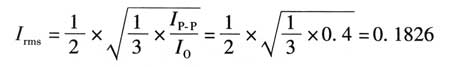 這時(shí)紋波電流的大小主要看輸出濾波電感對(duì)電流的平滑作用如何?如果輸出電流在20%負(fù)載仍能連續(xù)則輸出濾波電容器僅承擔(dān)輸出電流的40%峰峰值紋波電流,如紋波電流近似為三角波時(shí),其有效值為