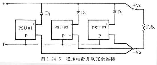 實(shí)際上,一個(gè)故障電源適配器可能是短路,如發(fā)生晶閘管的過(guò)壓擊穿。為使該故障電源適配器單元與受過(guò)載影響的其他電源適配器單元隔開(kāi),各個(gè)電源適配器以整流二極管或門(mén)的形式連接到輸出端。圖顯示一個(gè)典型的電路。