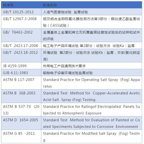 不同的噴霧方法對鹽溶液的pH值也會產(chǎn)生影響。 鹽霧試驗相關(guān)的標(biāo)準(zhǔn)