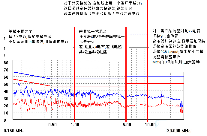 11.結(jié)構(gòu)設(shè)計(jì),散熱片使用螺絲固定參考以下表格設(shè)計(jì),實(shí)際應(yīng)用中應(yīng)增加0.5-1mm余量,參考如下表格: ![]() BOM表上寫的螺絲規(guī)格一定要對(duì),不然量產(chǎn)時(shí)會(huì)讓你難受 12.結(jié)構(gòu)設(shè)計(jì),AC PIN焊線材的需使用勾焊,如果不是則要點(diǎn)白膠固定,理由:安規(guī)要求 經(jīng)常被第三方機(jī)構(gòu)退回樣品,整改 13.電源適配器電路設(shè)計(jì),COMP/CS/RT等不可靠近高壓、不可由高壓?jiǎn)?dòng)電阻下穿過(guò) 之前有款機(jī)子生產(chǎn)總是有部分不良,死活找不出原因,后來(lái)找到問(wèn)題是因Trace邊緣綠漆造成跳火 14.電源適配器傳導(dǎo)整改,分段處理經(jīng)驗(yàn),如下圖,這只是處理的一種方法,有些情況并不是能直接套用 ![]() 15.輻射整改,分段處理經(jīng)驗(yàn),如下圖,適合一些新手工程師,提供一個(gè)參考的方向,有些情況并不是能直接套用,最主要的還是要搞清楚EMI產(chǎn)生的機(jī)理。 ![]() 16.浸漆的TDK RF電感與未浸漆的鼓狀差模電感,浸漆磁芯產(chǎn)生的噪音要小12dB 聲音解決方法之二 17.變壓器生產(chǎn)時(shí)真空浸漆,可以使其工作在較低的磁通密度,使用環(huán)氧樹(shù)脂黑膠填充三個(gè)中柱上的縫隙 聲音解決方法之三 18.這次拋個(gè)關(guān)于PCB碰到的問(wèn)題,如圖,為什么99SE畫板覆銅填充的時(shí)候填不滿這個(gè)位置?像是有死銅一樣 ![]() ![]() 19.液晶顯示器電源適配器變壓器銅箔屏蔽主要針對(duì)傳導(dǎo),線屏蔽主要針對(duì)輻射,當(dāng)傳導(dǎo)非常好的時(shí)候,有可能你的輻射會(huì)差,這個(gè)時(shí)候把品字尾電源適配器變壓器的銅箔屏蔽改成線屏蔽,盡量壓低30M下降的位置,這樣整改輻射會(huì)快很多。 EMI整改技巧之一 20.測(cè)試輻射的時(shí)候,多帶點(diǎn)不同品牌的MOS、肖特基。有的時(shí)候只差2、3dB的時(shí)候換一個(gè)不同品牌會(huì)有驚喜。 EMI整改技巧之二