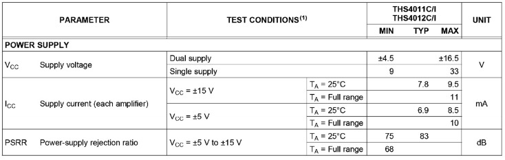 | 電源適配器電壓定義為可使放大器工作在線性區(qū)的可接受的VDD(或+VCC)和VSS(或-VCC)之間的差值。如果電壓差小于規(guī)定值,則放大器很可能無(wú)法可靠地工作。如果電源適配器電壓高于規(guī)定值,雖然放大器可以按預(yù)期工作,但由于施加給放大器內(nèi)晶體管的電壓過(guò)大,很可能導(dǎo)致器件損壞。在產(chǎn)品數(shù)據(jù)手冊(cè)的參數(shù)表中,通常會(huì)給出該放大器的絕對(duì)最大額定值(AbsoluteMaximumRatings),放大器的電源適配器電壓一定不能夠超過(guò)該數(shù)值。例如,OPA690的電源適配器電壓最大額定值為±6.5V。 電源適配器電流(IDD、IQ或ICC)指定為空載條件下的電流。通常,當(dāng)放大器帶有負(fù)載時(shí),拉電流主要會(huì)從VDD引腳輸出,流經(jīng)運(yùn)放的輸出級(jí)然后流向負(fù)載,而灌電流主要會(huì)導(dǎo)致VSS增加。 電源適配器參數(shù)(VSS、VDD和IDD、IQ)通常作為獨(dú)立項(xiàng)出現(xiàn)在產(chǎn)品數(shù)據(jù)手冊(cè)的參數(shù)表中。該參數(shù)偶而也會(huì)作為PSRR參數(shù)的測(cè)試條件。圖所示為[1]THS4011、THS4012數(shù)據(jù)表的電源適配器參數(shù)。 ![]() 電源適配器抑制比(PSRR) 1.電源適配器電壓抑制比的定義 電源適配器抑制比(PSRR,PowerSupplyRejectionRatio)是與電源適配器抑制比參數(shù)kSVR相同的。它被定義為電源適配器電壓的改變量與由此引起的輸入失調(diào)電壓改變量之比的絕對(duì)值。在一般情況下,電源適配器的兩個(gè)端電壓是對(duì)稱變化的。它的單位是分貝(dB)。 電源適配器電壓會(huì)影響到輸入差分對(duì)的偏置點(diǎn)。由于輸入電路固有不匹配,偏置點(diǎn)的改變會(huì)引起失調(diào)電壓的改變,進(jìn)而引起輸出電壓的改變。 對(duì)于雙電源適配器運(yùn)放,PSRR=ΔVCC±/ΔVOS或者ΔVDD±/ΔVOS。ΔVCC±中的正負(fù)號(hào)表示正負(fù)電源適配器是對(duì)稱地改變的。對(duì)于單電源適配器運(yùn)放,PSRR=ΔVCC/ΔVOS或者ΔVDD/ΔVOS。同時(shí)還應(yīng)該看到,PSRR的生成機(jī)理是與共模抑制比CMRR相同的。因此,在數(shù)據(jù)手冊(cè)中,PSRR也被歸入直流參數(shù)。當(dāng)把PSRR與頻率的關(guān)系畫成曲線時(shí),這條曲線將隨頻率的增加而下降。 如果改變運(yùn)放的供電電壓,其輸出電壓本不應(yīng)該發(fā)生變化,但是實(shí)際上它的確會(huì)有變化。如果供電電壓改變X伏時(shí)引起的輸出電壓變化量與差分輸入改變Y伏引起的輸出變化相等,那么運(yùn)放的PSRR=X/Y。在PSRR的定義中,假設(shè)電源適配器正負(fù)電壓同時(shí)向相反方向改變同樣的大小,否則將引起共模變化,令分析更為復(fù)雜。PSRR不同,對(duì)電源適配器正負(fù)電壓的抑制效果也不同。 2.電源適配器電壓波動(dòng)對(duì)輸出電壓的影響 電源適配器電壓波動(dòng)對(duì)輸出電壓有直接的影響。 〖舉例〗對(duì)于電池供電的放大器電路要求運(yùn)放必須具有良好的電源適配器抑制性能。在圖1.1.2所示電路中,使用電池來(lái)為放大器供電,放大器被配置為具有高閉環(huán)增益101V/V。 ![]() 在電池的生命周期中,隨著使用時(shí)間的推移,電池的輸出電壓會(huì)從5.75V逐漸降至4.75V。如果該放大器的電源適配器抑制比為500μV/V(或66dB),隨著時(shí)間推移,放大器輸出端的誤差將為50.5mV。在一個(gè)滿量程為4.096V的12位系統(tǒng)中,這相當(dāng)于在電池的生命周期中,失調(diào)電壓變化量的50.5倍。 PSR(V/V)=ΔVOS/ΔVSUPPLY VOUT=(1+RF/RIN)(VIN+VOS) 在電池供電應(yīng)用中,可以看見(jiàn)電池供電電壓會(huì)在電池的整個(gè)生命周期中變化幾百毫伏。若將此類應(yīng)用中運(yùn)放配置為高閉環(huán)增益,則要求運(yùn)放必須具有良好的電源適配器抑制性能。 3.電源適配器抑制比的頻率響應(yīng) 電源適配器抑制比參數(shù)量化了放大器對(duì)電源適配器變化的敏感度。理想情況下,電源適配器抑制比應(yīng)該是無(wú)窮大。一般放大器的電源適配器抑制比的范圍為60~100dB。 與放大器的開(kāi)環(huán)增益(AOL)特性一樣,PSRR也是頻率的函數(shù),隨著頻率的升高,PSRR的數(shù)值開(kāi)始下降。如圖1.1.3所示[4],電源適配器產(chǎn)生的變化(或者噪聲,疊加在電源適配器上的噪聲也會(huì)引起電源適配器電壓的變化)在1kHz以下,+PSRR約為130dB;之后,隨著頻率的上升,PSRR不斷下降。而-PSRR隨著頻率的上升,不斷下降。很明顯,對(duì)高頻電源適配器變化(噪聲)的抑制能力要低于對(duì)直流和低頻電源適配器變化(噪聲)的抑制能力。 ![]() 注意:開(kāi)關(guān)電源適配器產(chǎn)生的噪聲頻率為50~500kHz或者更高。在這些頻率范圍,PSRR的幾乎為零。所以,在電源適配器上的噪聲會(huì)引起運(yùn)算放大器在輸出端產(chǎn)生噪聲。對(duì)此,必須采用適當(dāng)?shù)呐月罚ㄈヱ睿┘夹g(shù)。 在閉環(huán)系統(tǒng)中,放大器的電源適配器抑制能力略低于理想情況,它表現(xiàn)為失調(diào)電壓誤差的形式(PSRRERROR=ΔVOS)。描述這一誤差的公式如下: PSRR(dB)=20lg(ΔVSUPPLY/ΔVOS) 描述電源適配器抑制能力的公式為 PSR(V/V)=ΔVOS/ΔVSUPPLY 式中,VSUPPLY=VDD-VSS;ΔVOS表示電源適配器電壓變化ΔVSUPPLY時(shí),引起輸出電壓變化ΔVO折合到輸入端的失調(diào)電壓,ΔVOS=ΔVO/ΔAvd。ΔAvd為放大器的直流放大倍數(shù)。 〖舉例〗帶有最小5倍增益的寬電源適配器范圍、軌到軌輸