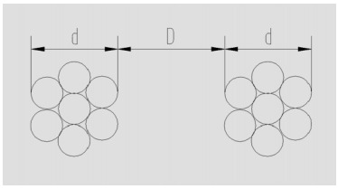 其中D為不同類電纜束間距,d為各類電纜束的綁扎后的外徑最大值,要求D>10d。