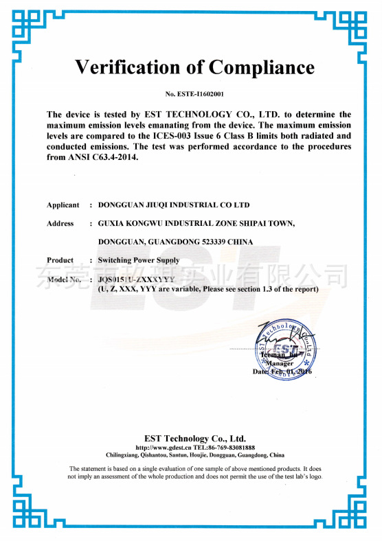 ETL、GS&CE、PSE、CCC、KC、BS、SAA、UC、STQC、FCC-VOC、CE-EMC、CB、ICES-003等認證