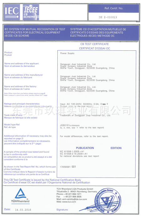 網(wǎng)站首頁(yè) » 產(chǎn)品展示 » 產(chǎn)品認(rèn)證 » 15W證書(shū) » CB安規(guī)證書(shū)-15W系列電源適配器