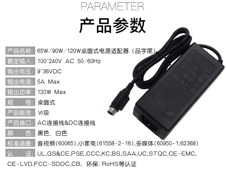 網(wǎng)站首頁(yè) » 產(chǎn)品展示 » 電源適配器 » 90W » 90W黑色桌面式8字尾充電器