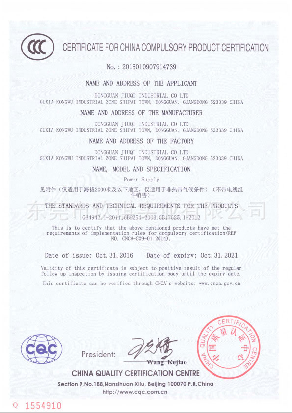 網(wǎng)站首頁 » 產(chǎn)品展示 » 產(chǎn)品認(rèn)證 » 36W證書 » CCC安規(guī)證書-36W系列電源適配器